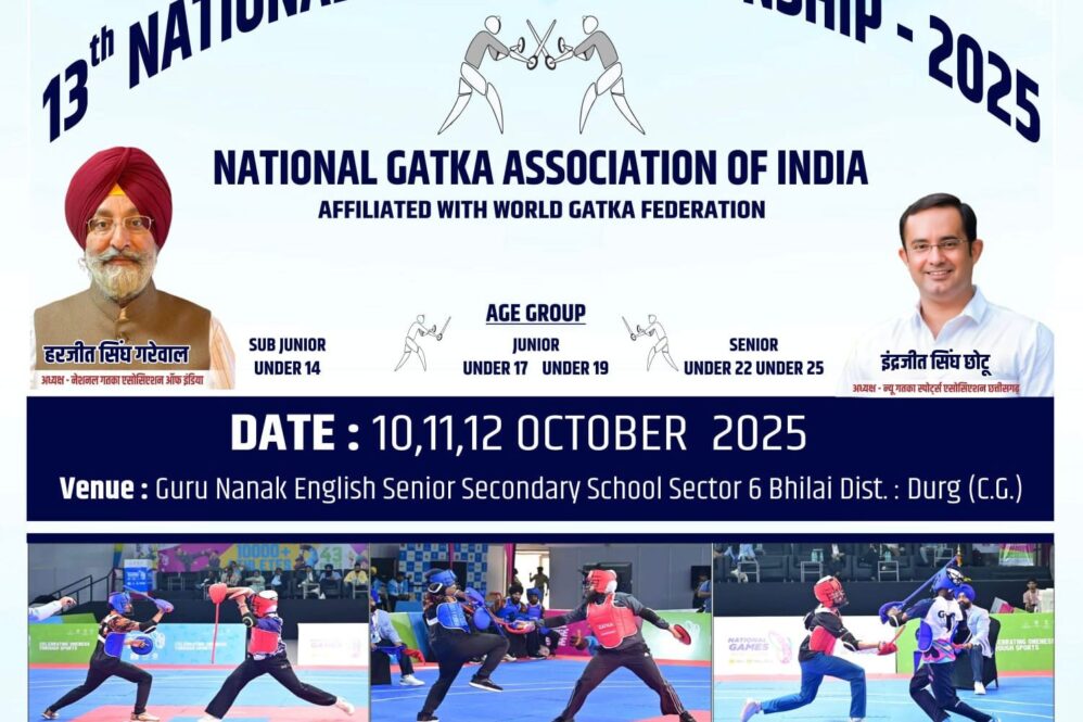 Chandigarh, October 2, 2025 : The National Gatka Association of India (NGAI), affiliated with World Gatka Federation and Asian Gatka Federation, is organising its 13th National Gatka (Men & Women) Championship from October 10 to 12, 2025 at Guru Nanak English Senior Secondary School, Bhilai, district Durg in Chhattisgarh. This national-level martial arts tournament is being organised in association with New Gatka Sports Association Chhattisgarh and would feature participation of Gatka teams from various states competing in a series of thrilling individual and team events in Gatka Soti and Farri-Soti over three days.